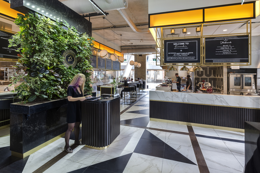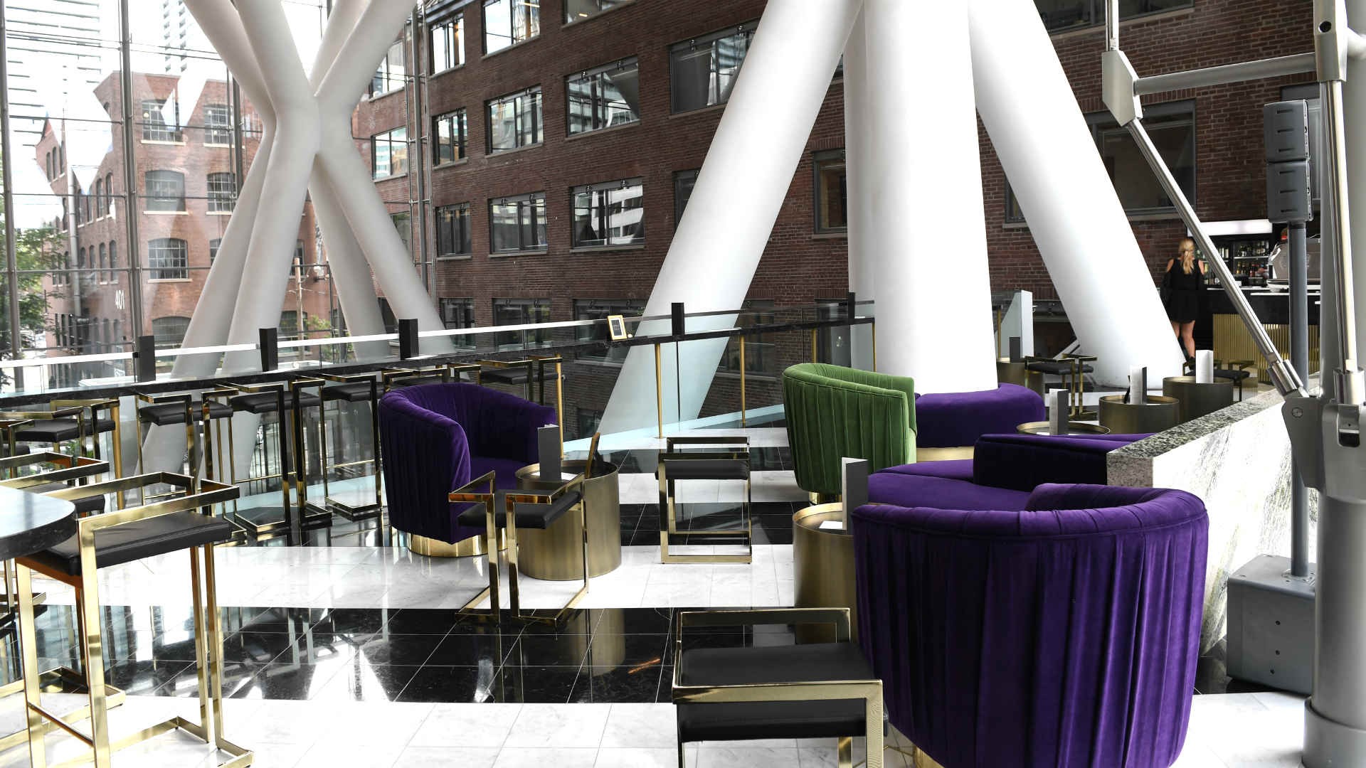 10,000 sq ft high-end restaurant with bakery, take-out, chef experience stations, dining area and wine bar in downtown Toronto. Accompanying Attico in the upper mezzanine is Attico - an intimate cocktail bar with tapas. Inspired by cafes in Milan with permanent natural materials, brass, wood and stone for timelessness.